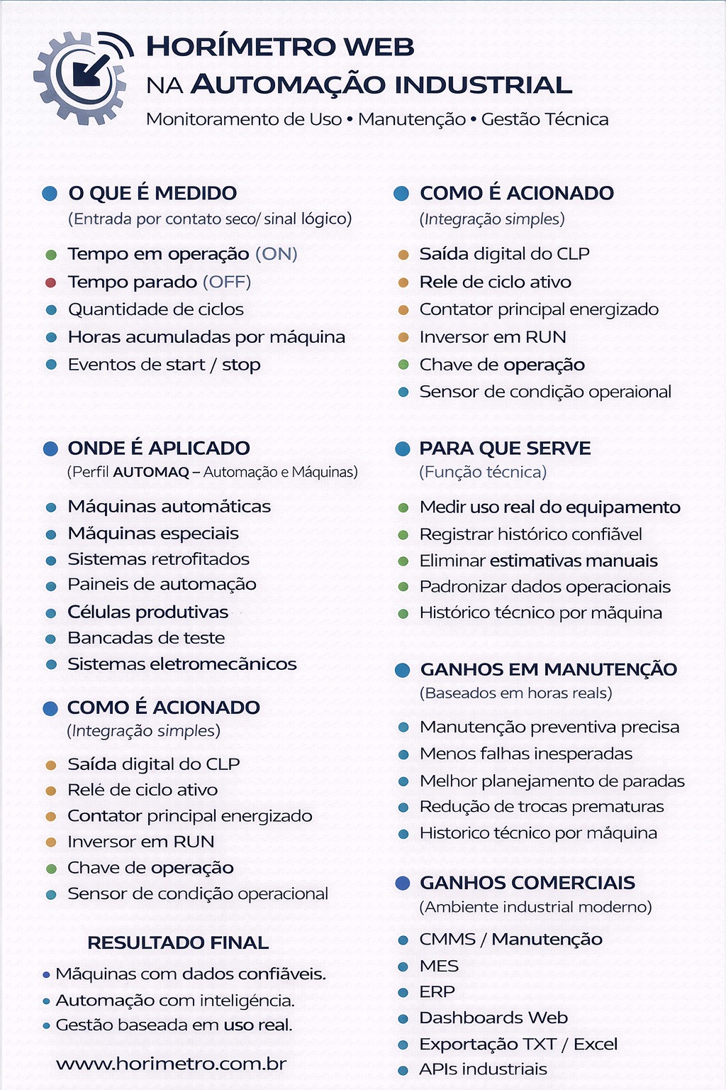 O invento marca e fortalece a quarta revolução industrial, em curso no mundo, sendo um grande sale na modernização e controle de qualquer equipamento, mesmo que de pequeno porte ou 100% mecânico, que necessitem utilizar horímetros de forma mais eficiente e conectado com a internet, dando a todos a possibilidade de acompanhar os tempos de trabalho, de suas máquinas, de qualquer lugar do mundo o que até então não existia.