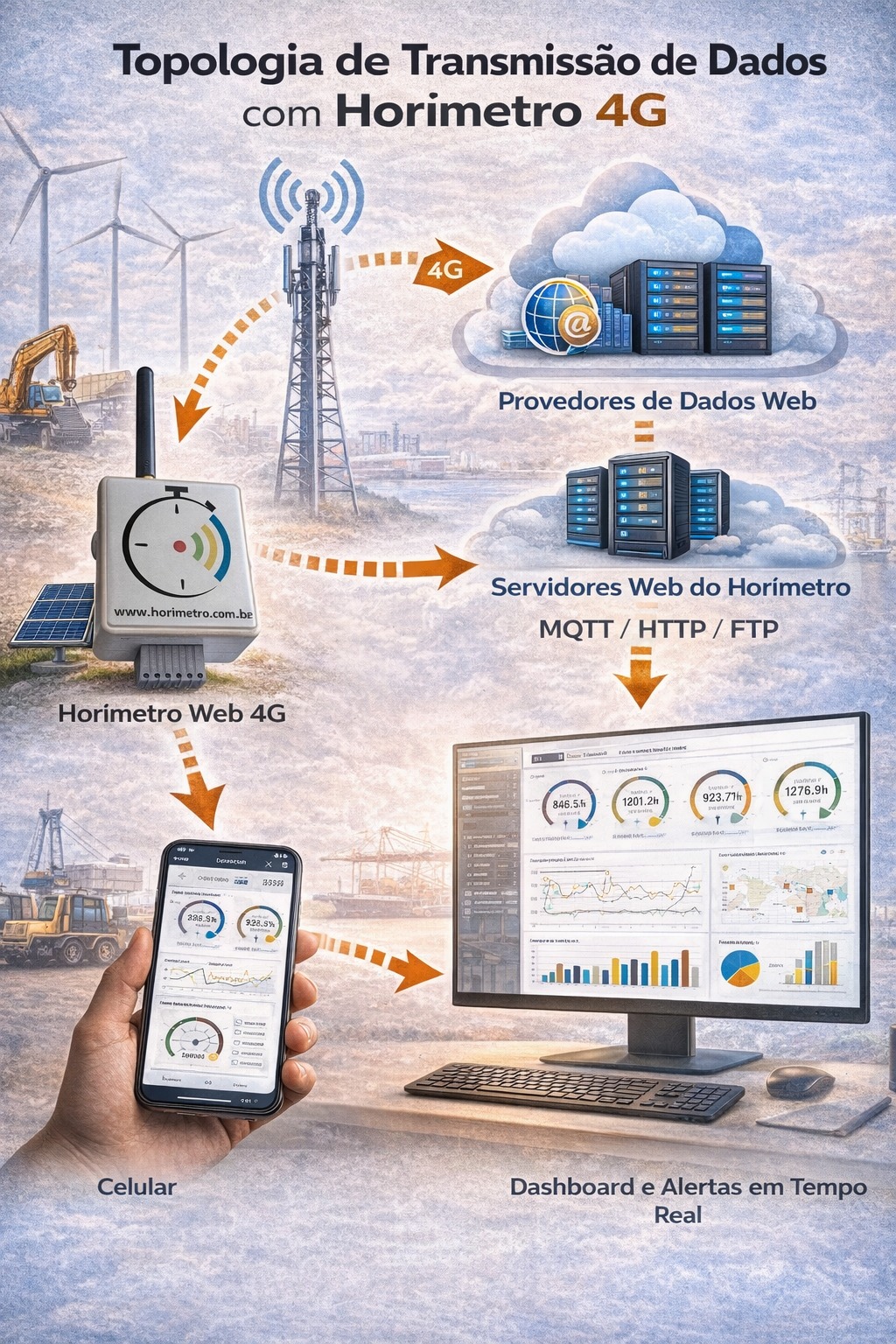 Desde 1930 até hoje, os horímetros eram mecânicos, elétricos ou eletrônicos, sem conexão com a internet ou intergração com sistemas ERPs.